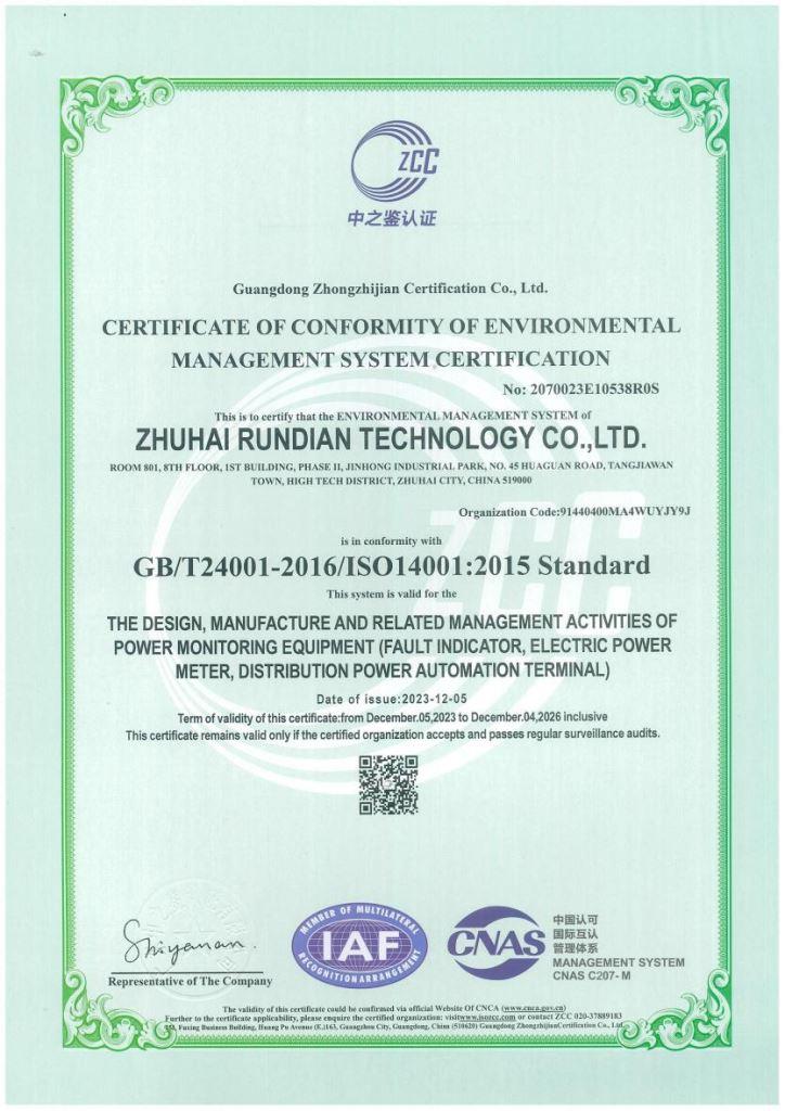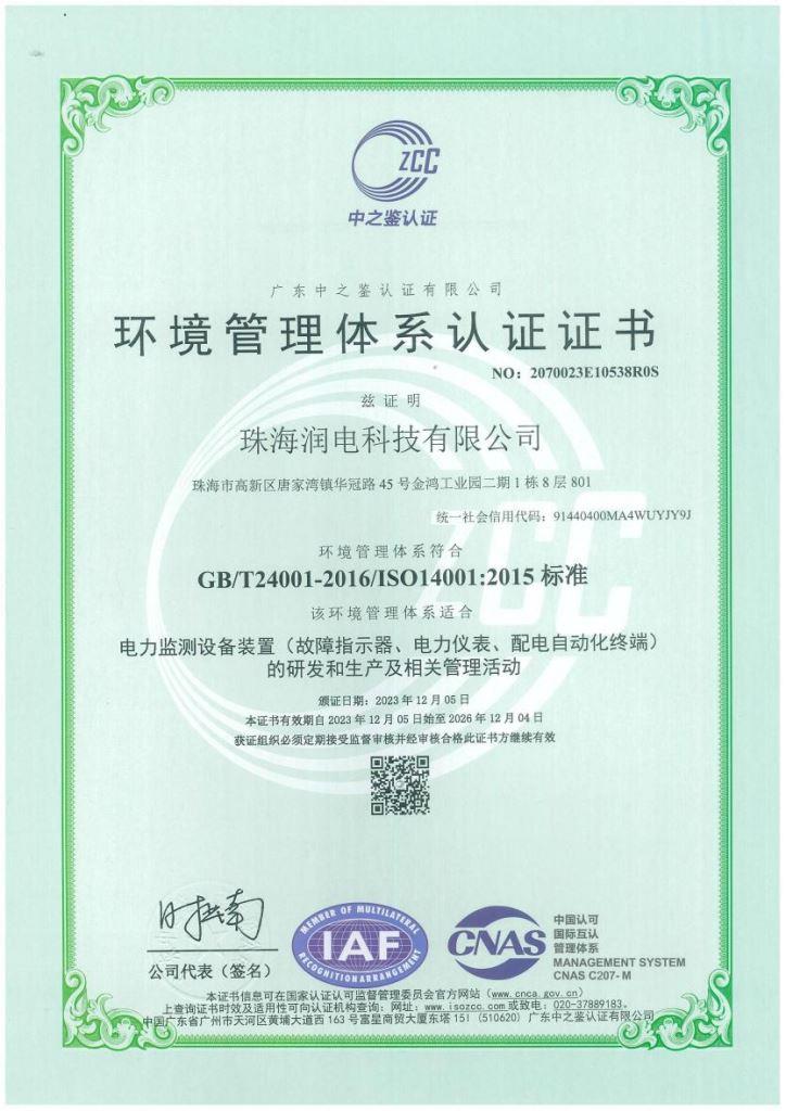 ISO14001環(huán)境管理體系認證證書